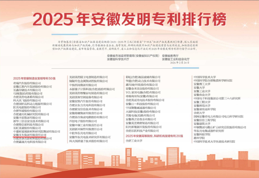 近日,安徽省市場監(jiān)督管理局(安徽省知識產權局)、安徽省教育廳、安徽省科學技術廳、安徽省工業(yè)和信息化廳聯(lián)合發(fā)布“2025年安徽發(fā)明專利排行榜”,安徽叉車集團憑借卓越的創(chuàng)新能力與知識產權優(yōu)勢,成功入選安徽省制造業(yè)發(fā)明專利50強。 作為工業(yè)車輛行業(yè)的...